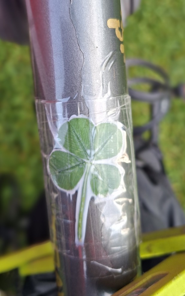 Smorgens appt Kleijberg dat de fiets klaar is en smiddags weer op pad. Manon plakt nog klavertjes vier op onze fietsen dus vanaf nu komt het goed.