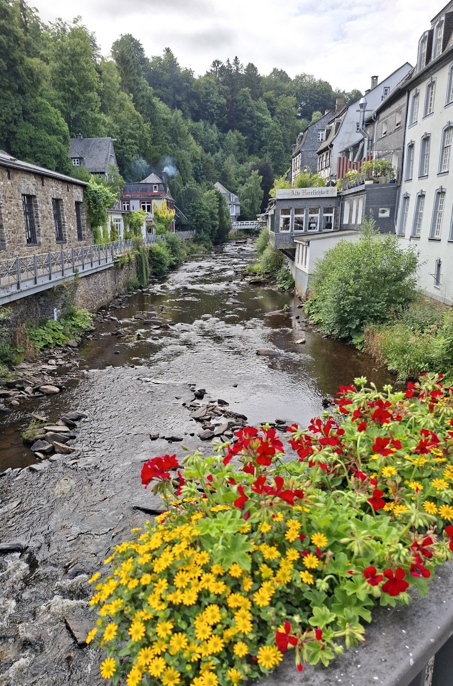 We fietsen door mooie landschappen, zien mooie steden, Monschau o.a. . Maar het lieftst fietsen we door de natuur op rustige wegen. En dat lukt.