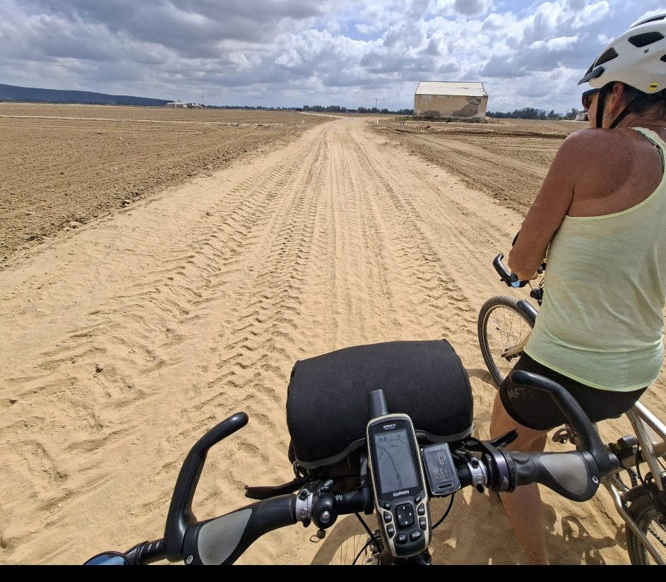 Dat we ook over autowegen fietsen, de gps moeilijk doet, campings gesloten zijn, het asfalt over gaat in gravel en dan mul zand. Ach dat hoort erbij.